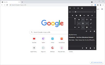 To cast videos or music, Cast Kodi adds three items to the context menu of links, pages, or video/audio selections: Play now to Kodi, Play next to Kodi, and Queue item to Kodi. Additionally, there is a remote control accessible through a toolbar button that allows users to cast the current tab to Kodi and control playback, including pausing, skipping to the next element, and adjusting the volume.